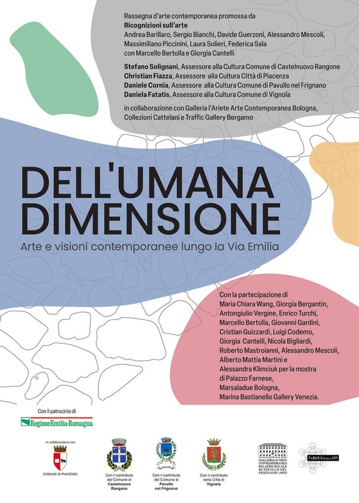 L’Associazione culturale Ricognizioni sull’arte, proseguendo nell’attività di disamina dello stato dellarte in Emilia Romagna, avviata nel 2020 e incrementata con appuntamenti espositivi annuali, presenta “Dell’umana dimensione. Arte e Visioni contemporanee lungo la Via Emilia”, rassegna d’arte contemporanea tesa alla promozione del lavoro di artisti noti o in via di affermazione, attraverso la valorizzazione dei territori, delle città e dei comuni legati alla via Emilia.