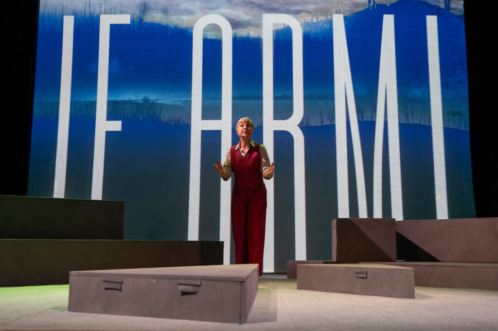 Un racconto che parla al presente, interrogando il nostro tempo. Lo spettacolo è diretto da Sandra Mangini, con le musiche originali di Enrico Fink eseguite dal vivo dai Solisti dell’Orchestra Multietnica di Arezzo, e si avvale di una potente costruzione visiva e sonora che accompagna lo spettatore in un viaggio emotivo e politico di grande intensità.