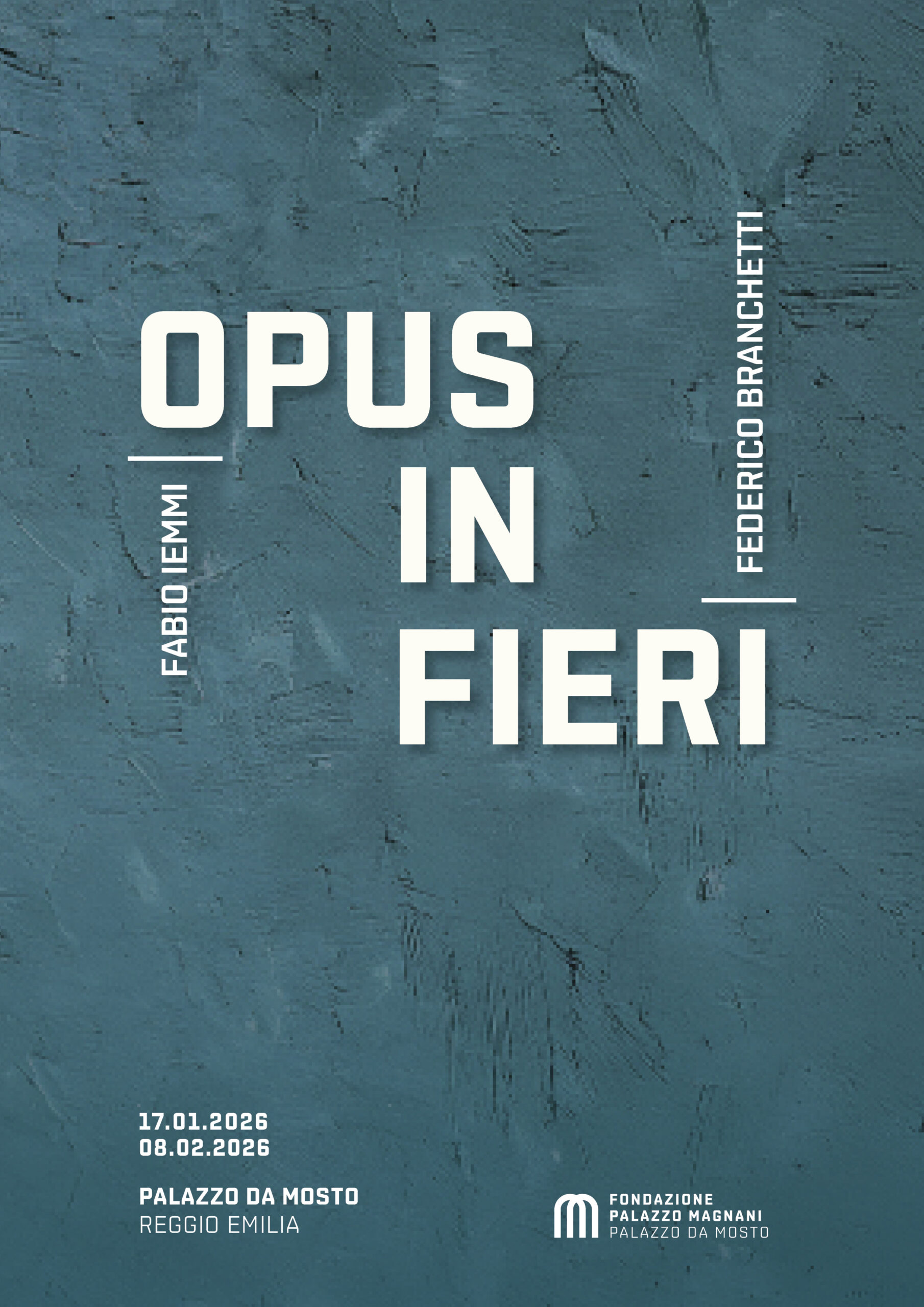 “Opus in fieri sviluppa una riflessione sulla potenzialità, momento che precede la completa manifestazione del gesto. Fabio Iemmi e Federico Branchetti dimorano questa indeterminatezza, articolandola nella creazione di opere. Principio guida inamovibile è la materia, coordinata tangibile del loro creare”, scrive la curatrice Greta Martina.