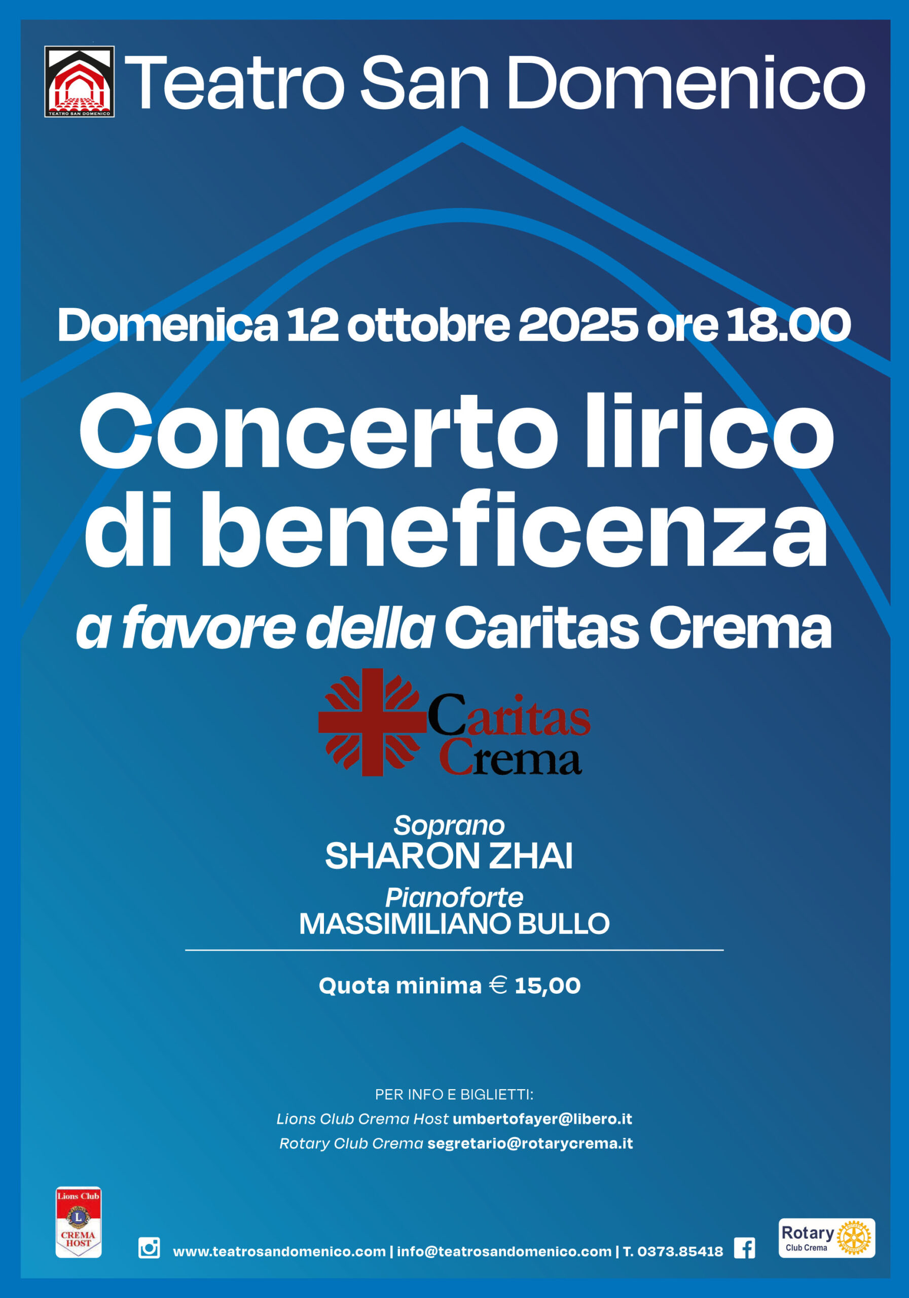 Crema, Cremona – Appuntamento domenica con un concerto lirico di beneficenza a favore di Caritas Crema, un evento che unisce musica, solidarietà e comunità.