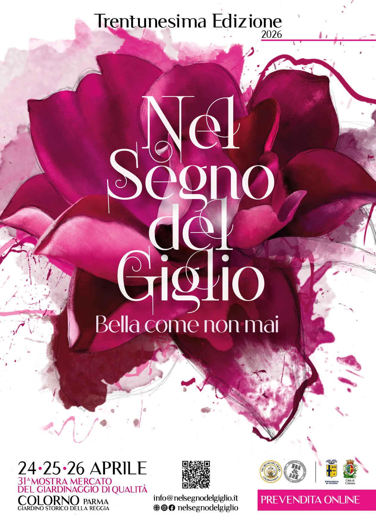 Colorno, Parma – Nel cuore del Giardino Storico della Reggia di Colorno torna “Nel Segno del Giglio”. La manifestazione, organizzata da Bi&Bi Eventi in collaborazione con il Comune di Colorno e la Provincia di Parma, con la curatela di Vitaliano Biondi (Arvales Fratres) ed Elisa Storti per gli eventi enogastronomici, giunge alla sua XXXI edizione, confermandosi uno degli appuntamenti più attesi e amati per chi è alla ricerca di giardinaggio di qualità.