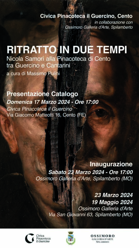 Cento, Ferrara – Finissage, presentazione del catalogo e nuova inaugurazione per la mostra Ritratto in due tempi. Nicola Samorì alla Pinacoteca di Cento tra Guercino e Cantarini, curata da Massimo Pulini e organizzata da Ossimoro Galleria d’Arte in occasione della riapertura della Civica Pinacoteca il Guercino di Cento, sottoposta ad importanti lavori di restauro a seguito del sisma dell’Emilia.