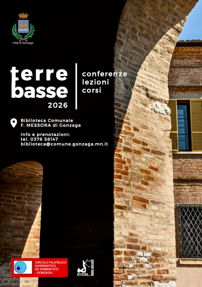 Gonzaga, Mantova – Si chiama “terre_basse” la nuova operazione culturale promossa dal Comune di Gonzaga e dal Circolo Filatelico Numismatico e Hobbistico per dare seguito all’esperienza della Libera Università del Gonzaghese attraverso un percorso formativo che integra storia, scienza, arte ed attualità.
